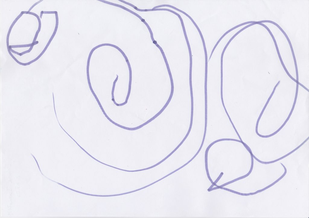 Después de muchos torbellinos, el gesto se hace más lento y el resultado es el control del trazo y la creación del círculo. Esto sucede de forma progresiva, primero en forma de gancho antes de llegar al círculo.