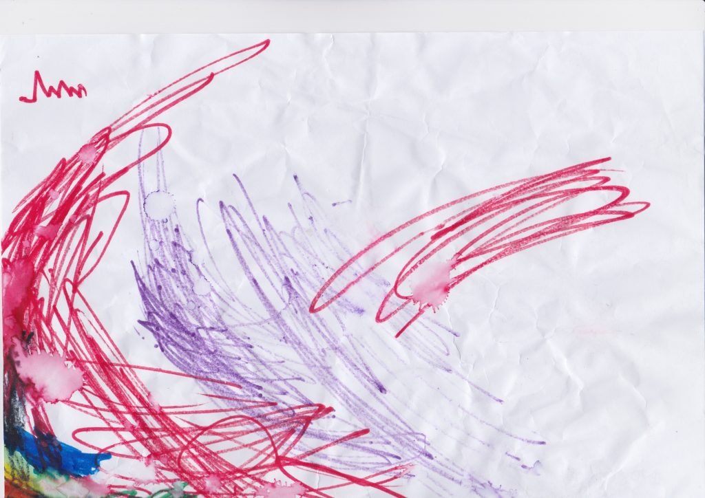 En esta etapa es necesario ofrecer un material resistente a los golpes y que no distraiga de la acción de crear trazos. Poner a disposición del niño papel y un boli es esencial para la evolución del trazo.